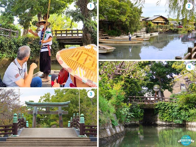 - Don a traditional woven hat and enjoy a 70 minute boat ride around the canals to admire the old town from the water. Cost: Adults 1700 yen each. The boatmen skilfully navigate shallow waters and incredibly low-lying bridges, which is part of the fun!